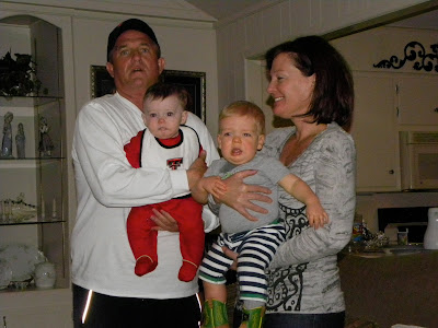 When we arrived there was much fun to be had. Aunt Cori and Uncle Trent had just gotten there too and were excited for our second Thanksgiving celebration to begin. Justin's grandparents joined us for dinner that evening. Caden loves his Great Poppa and Great Gran. This time Caden got to play "Ride Little Horsey" with Poppa... one of Justin and Cori's favorite past times.