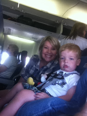 We had been prepping Caden for his trip for days, which coincidentally turned out to be a bit nightmarish in the preparation process. We had SEVERAL meltdowns starring Caden, standing at the back door with his suitcase "packed" crying, "I YEADY to GO Mommy! I YEADY!" From here on out we decided that surprise and attack is going to be our motto with Caden. In our attempts to set expectations and get him excited about his first trip out of state, in a plane, etc. we got him WAY TOO fired up... which made for a LONG few days! :) Bless his heart, he must not get out enough! :)